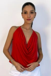 Blusa frente única com decote profundo e modelagem drapeada, ideal para produções fashionistas com toque sensual e elegante. A peça possui alças finas que contornam o pescoço, dessa maneira você consegue ajustar da maneira que preferir, deixando as costas à mostra, e valoriza a silhueta com leveza e fluidez. O detalhe do decote com acabamento limpo e a barra com bainha dupla reforçam a sofisticação da peça, perfeita para ocasiões noturnas ou eventos que pedem destaque.