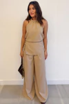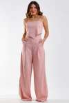 Calça de alfaiataria com 2 fivelas no cós. Fechamento com colchetes