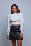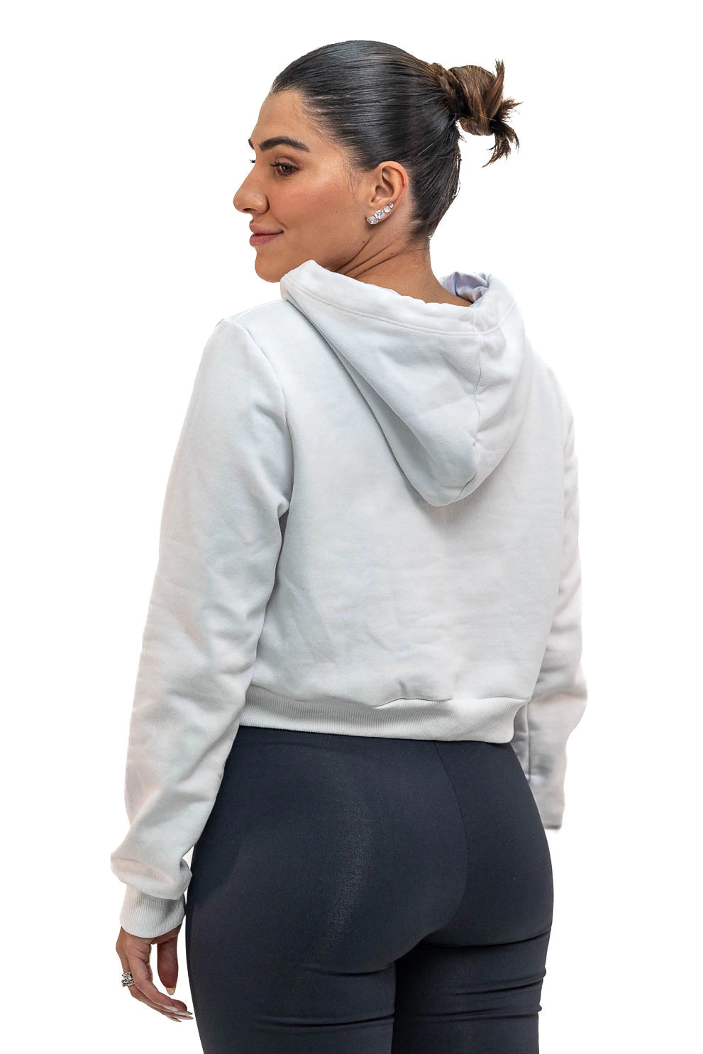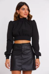 Moletom no modelo cropped. Moletom flanelado por dentro (100% algodão). Punho na manga, e no cós com bastante elastano. Manga no estilo bufante. Não colocar na secadora, lavar com água fria e secar na sombra.